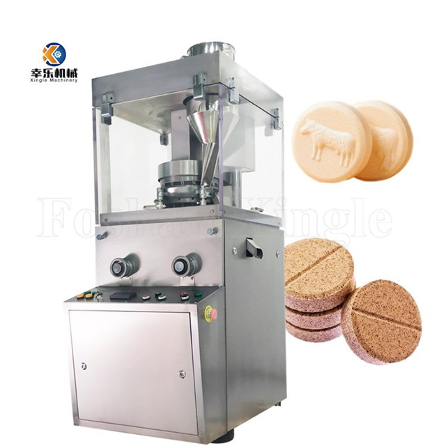 ZP-15 17 19 21D旋转式压片机符合GMP标准,适合制药行业中小规模生产。主要用于制造固体药物片剂。它可以将医药原料粉末压制成各种形状和规格的片剂,如圆形、椭圆形、矩形等。这些片剂可含有活性成分,并具有控释、缓释或缓释的作用,以满足不同用药的需要。