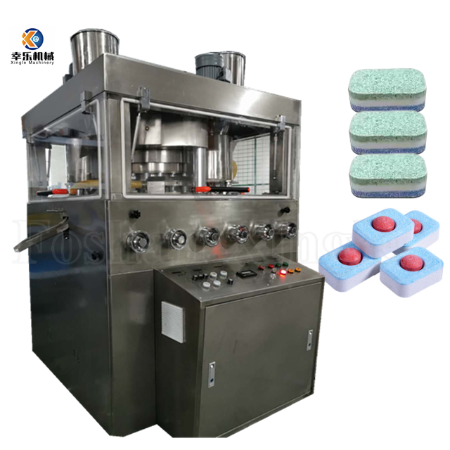 GZP680三色旋转式压片机不仅可以压制单色片剂,还可以压制双色片剂。其最大的特点是可以压制三色片。三层旋转式压片机可将不同颜色、口味的糖果粉末或不同成分的药品颗粒或粉末注入相应的料斗中,然后利用压力将它们紧密地压在一起,形成不同层数的颜色和口味的薄膜。彩色糖果,除了三色泡腾片外,还可以一粒实现多种功能。