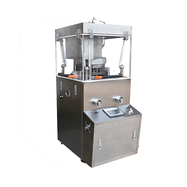 该机具有压力高、压片范围广的特点,可压制普通、异型、圆形等形状的片剂,特别适合多品种、小批量生产。机电一体化,所有控制器和调节装置集中在机体一侧,操作方便。设有压力过载保护装置,避免机器损坏。采用油侵润滑的传动机构密封在机体下方,延长了使用寿命,避免了交叉污染。